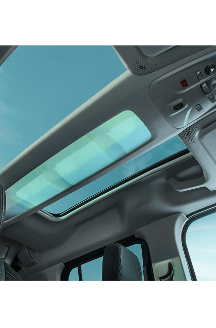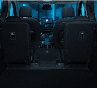 Modularidad extrema, con cinco o siete plazas, puertas laterales correderas y techo almacenable opcional.