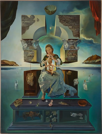 Dalí va pintar La Madona el 1950, tot plasmant el seu abandonament del surrealisme i l’abraçada a una nova etapa mística i onírica. Hi va pintar Gala com una Mare de Déu renaixentista entronitzada, que sosté a la falda un Nen Jesús; es tracta de Joan Figueres, el nen que va viure amb la parella una relació gairebé paternofilial durant dècades, fins que Gala va morir el 1982. La Madona, que no s’exposava a Espanya des del 1952, ha viatjat al seu origen, a prop d’on Dalí la va pintar, gràcies a la mostra monogràfica que li dedica la Fundació Gala-Salvador Dalí de Figueres, fins al 22 de febrer.