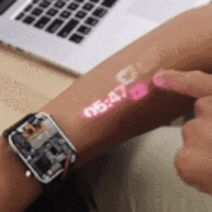 ¿Se te queda corta la pantalla de tu smartwatch? LumiWatch te propone extenderla por tu antebrazo a través de una proyección táctil. Unos 40 centímetros cuadrados de superficie interactiva.