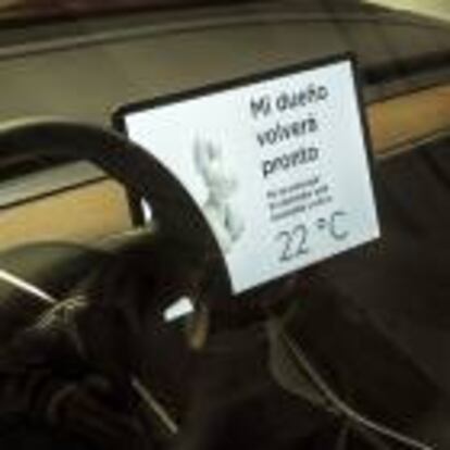 Podemos dejar sola a la mascota durante un buen rato sin miedo a que nos denuncien por desaprensivos. Un rótulo en la pantalla que se lee desde fuera advierte “Mi dueño volverá pronto, no te preocupes” y salta el climatizador del habitáculo.