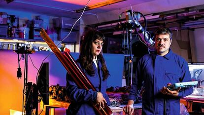 En una época en la que lo digital se impone a lo analógico, los fundadores de Hamill Industries decidieron ir contracorriente. “Hamill nació de la necesidad de trabajar un poco con nuestras manos, de trascender la pantalla”, explica Anna Diaz, que puso en marcha este estudio barcelonés en 2015 junto a Pablo Barquín. Realizadores y directores de arte con predilección por lo analógico, ellos buscan nuevas vías de expresión para sus trabajos. “Cuando empezamos, conocimos al productor y músico Floating Points y le interesó el invento que estaba desarrollando Pablo”, recuerda Diaz. Mediante una técnica que mezclaba impresoras 3D, la técnica del stop motion y LED de luz, crearon una identidad visual del sonido del músico británico que está completamente libre de retoque digital. “Lo que buscamos es inventar cosas, aunque no sean técnicas absolutamente profesionales. Nos gusta que se puedan ver los errores”, asegura.