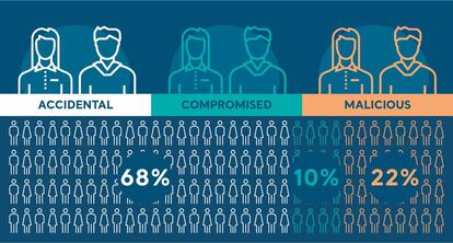 Aquí, el desconocimiento puede llevar a los empleados a estar en disposición de ocasionar un incidente por haber sido comprometidos por un ataque externo. Por último, están los usuarios malintencionados, aquellos que intentarán aprovechar el conocimiento del entorno y los controles existentes para realizar actividades no lícitas con los recursos e información de la compañía. Pueden afectar al core de la corporación y a los activos más críticos y son lo casos más difíciles de identificar, especialmente si no existe un análisis previo del comportamiento y las acciones del trabajador. Las empresas les dedican el 22% del presupuesto en materia de seguridad, pero la efectividad de las medidas presentan grandes carencias.
