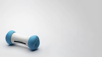 En el apartado tecnológico no hay peros: este dispositivo cubierto de plástico blanco y rematado en los extremos por dos gomas reemplazables responde a las promesas de su fabricante, la empresa de origen chino Cheerble. Para ponerlo en marcha, basta cargar su batería, instalar la app en el teléfono y establecer la conexión. Al momento se muestra el menú de movimientos disponibles. En el modo interactivo, el hueso se mueve solo por el tiempo establecido —entre cinco y 45 minutos—: tienta al can rodando tímidamente y se sacude con más intensidad cuando detecta que hay interacción. La modalidad de conducción permite al usuario controlar a placer el catálogo de movimientos del Wickedbone, que incluye desplazamientos hacia atrás o adelante, distintos saltos y giros suaves o más veloces.