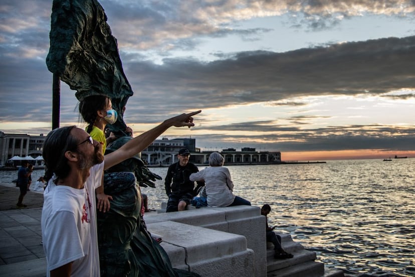 “Un español se siente bien en Trieste y un austriaco, también. Y un turco y un francés”, constata Paolo Rumiz (Trieste, 1947) nada más darnos la bienvenida en la piazza Unità d’Italia, donde el 18 de septiembre de 1938 Mussolini proclamó ante la multitud, desde el balcón del Ayuntamiento, las leyes raciales y antisemitas. Buscamos un café. O están cerrados o son demasiado turísticos. Pero incluso los turísticos no están llenos de turistas. Este no es un verano normal.