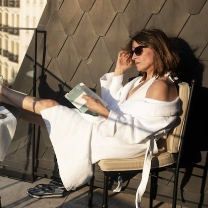Penetrar en el lobby del FS, antiguo patio del Banco Español de Crédito, a tiro de piedra de los hombres-anuncio con petos de “compro oro” de la Puerta del Sol, es alunizar en otro planeta. Los apabullantes e impecables centros de mimosas dan la pista. Aquí todo es a lo grande y funciona sin que se note. Y sí, en efecto, la clientela no parece querer demostrar nada, pero tiene ese no sé qué de quien no mira el precio de lo que compra que yo no tengo. En recepción no hacen distingos. Aunque saben quién soy y a lo que vengo, la recepcionista me pregunta si vengo de muy lejos, si por placer o por negocios, mientras su compañero inquiere: “¿Desea tomar una copa de champán, señora Sánchez-Mellado?”, en la primera de los cientos de veces que oiré mi nombre en esos términos durante mi estancia. Digo que no, gracias, omitiendo que acabo de atizarme un pincho de tortilla en mi bar de polígono, pero no pierdo ocasión de hacer el ridículo y aclaro que mi acompañante, el señor Expósito, el joven fotógrafo de este reportaje, no es mi marido, ni mi novio, ni mi sugar baby (persona joven que sale con una más mayor por su dinero), ni me toca nada, vamos. Ambos sonríen, enigmáticos, y dicen sin decirlo: ver, oír y callar es norma de la casa. Lo que pasa en el Four Seasons se queda en el Four Seasons.