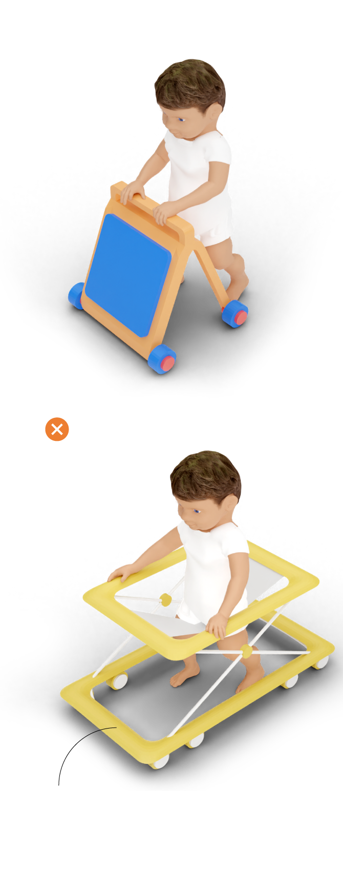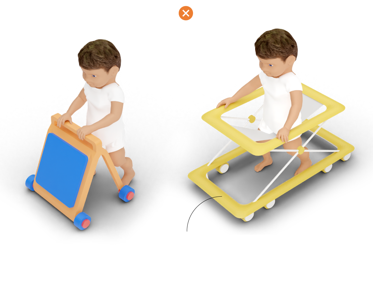 El único andador que se salva es el cochecillo con ruedas que el niño empuja con un manillar. “Eso es arrastrar algo. No es tan malo. Empujan eso como otra cosa [una silla, por ejemplo] para ayudarse”, apunta Asso.