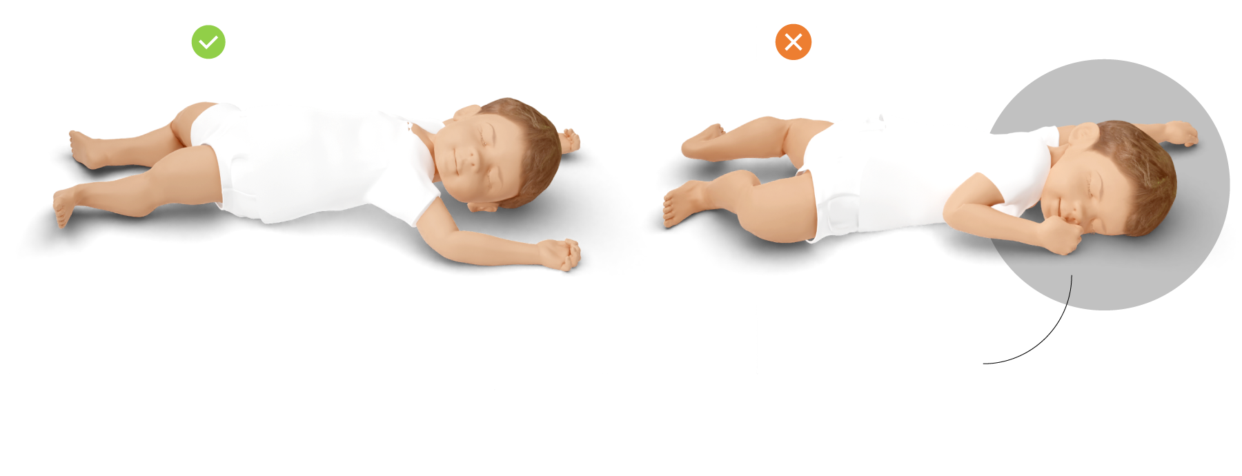 Hasta finales de los años ochenta, la consigna era dormirlos boca abajo, pero en 1994 se comenzó a alertar del riesgo de muerte súbita en esta posición y la recomendación cambió a dormirlos boca arriba. La literatura científica señala que dormir al bebé boca abajo eleva hasta 14 veces el riesgo de muerte súbita del lactante, principalmente por el riesgo de asfixia, pero apuntan también otras teorías. Por ejemplo, que esta posición implica la privación de oxígeno que conduce a la hipoxia, la reinhalación de dióxido de carbono que lleva a la hipercapnia (elevación del dióxido de carbono en la sangre). También puede comprometer el flujo cerebral, obstruir vías respiratorias, provocar una alteración de la capacidad cardiovascular o un aumento de la temperatura corporal, entre otras complicaciones.