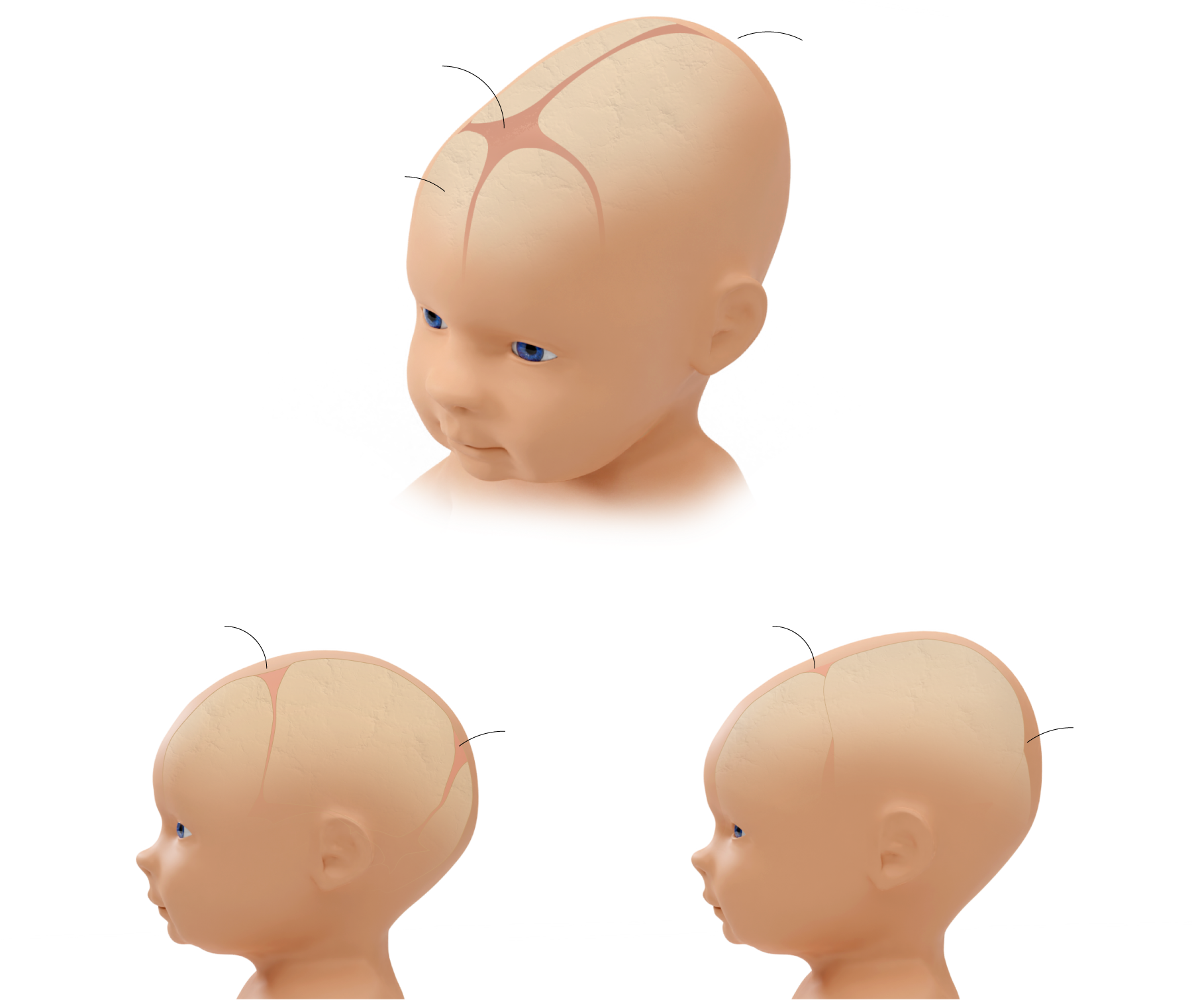 Las fontanelas son espacios blandos entre las placas óseas presentes durante la formación de la cabeza del bebé.