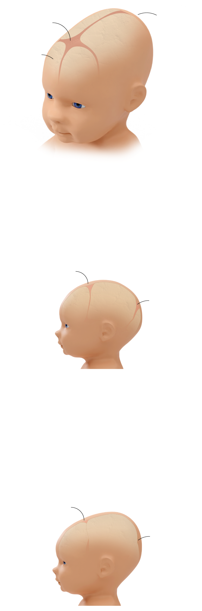 Al nacer, los huesos del cráneo del bebé no están fusionados entre sí: en la parte superior y anterior de la cabeza aparece una depresión en forma de rombo llamada fontanela anterior y en la parte posterior del cráneo otra de forma triangular. No pasa nada por tocarlas y es normal que la piel que recubre las fontanelas suba y baje cuando el bebé llora o hace un esfuerzo.