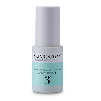 Fórmula liposomada con retinol, bakuchiol y niacinamida. Sérum retinol de SkinRoutine by Paloma Sancho (33,90 €) incorpora un 0.3% de retinol, porcentaje ideal para empezar a utilizarlo en la rutina. El bakuchiol ayuda a reducir las líneas de expresión, aumenta la elasticidad y mejora la textura y suavidad de la piel. Y la niacinamida fortalece la barrera cutánea, mejora la apariencia de las arrugas, difumina las manchas y trata el acné.