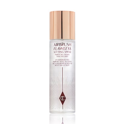 Airbrush Flawless de Charlotte Tilbury prescinde de ambos: «Si bien muchos sprays fijadores están llenos de ingredientes poco recomendables que pueden irritar la piel, he diseñado mi primer spray fijador, tras cinco años de investigación, para que cuente con una matriz de ingredientes beneficiosos para la piel, como aloe vera que calma, té verde japonés que hidrata y resina aromática que difumina los poros. Es hidratante al tiempo que fija el maquillaje, sin dejar de resultar ligero y consigue que el maquillaje se mantenga como recién aplicado, con una piel sedosa y suave al tacto», explica la maquilladora.