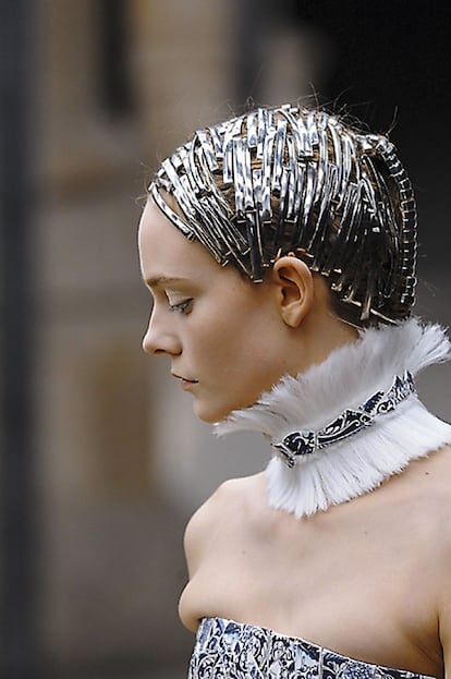 «Mi idea era crear una cabeza de metal y hacer una especie de armadura», afirma Guido Palau. El peluquero encargó miles de clips plateados para dar forma a los peinados de otoño-invierno de Alexander McQueen. «El pelo es un símbolo de la actitud de la mujer. Este tipo de recogidos hablan de personalidades fuertes», reflexiona. Los peinados que Eugene Souleiman creó para Alexander McQueen recuerdan a guerreras de ciencia ficción. ¿Herramientas? Extensiones, geles o cremas de peinado y algo de laca.