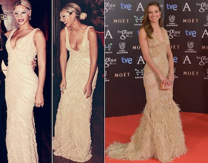 No, no vamos a hablar de Paula Echevarría, ni de su supuesto afán de inspirarse en los looks de blogueras internacionales. Al menos, el vestido de Dolores Promesas que lució en la alfombra roja de los Goya no se había visto en otra gala de postín. Otras sí decidieron repetir estilismo. Puestas a ponerse un Caprile, como la gran mayoría de las invitadas, mejor marcarse un Miranda Kerr o Beyoncé, que de posar saben un rato. Hagamos un pequeño repaso de las actrices que decidieron dejarse ver con otros estilismos ya vistos.