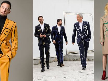 Por una y otra causa, las alfombras rojas se han transformado. La necesidad de transmitir valores y no solo marcas se ha hecho tangible. El precedente español lo marcaba la actriz Cuca Escribano en la edición pasada de los Goya posando con su chal reivindicativo, que llevaba escrito “más personajes femeninos” (solo hay un 20% de papeles femeninos en el cine). Y este año, durante la temporada de premios y eventos, el traje denuncia La mujer que llevo fuera, de Ernesto Artillo, ha hecho omnipresente su intervención feminista. “Tras el reportaje para S Moda, Alba Flores me pidió llevar el traje a los Premios Feroz. Después me lo pidieron Bárbara Santa-Cruz y Jorque Suquet. Él fue quien se lo contó a Isabel Coixet, que lo llevaba para recoger el Premio Mujerhoy”, explica. Aunque Artillo no sabe si el traje hará su aparición en estos Goya, cuenta la anécdota con una actriz: “Me dijo que le encantaba el traje y el concepto, pero que quería ir sexy (que me parece muy lícito), aunque a mí nada me parece más sexy que una buena certeza”. Y apunta: “Yo entiendo la moda como una manera de comunicarnos. Comunicar que llevas un Gucci está muy bien, pero si comunicas una cosa que te llega de una manera más profunda, justo en este momento que hay tanta necesidad de reivindicar, mejor”.