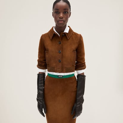 Massimo Dutti eleva la clásica sahariana con esta versión en ante de piel caprina en un elegante tono teja. Su diseño combina la estructura militar con detalles sofisticados como los botones dorados tipo joya y el cuello subido. Con bolsillos de solapa, tiras abotonadas en los hombros y abertura trasera, es una prenda que mezcla funcionalidad y sofisticación en clave atemporal. (Comprar por 399 €).La chaqueta Harrington de Loewe está confeccionada en España con un ante suave en un tono beige neutro que multiplica las posibilidades de estilo. Su silueta holgada se complementa con puños con cremallera y un bajo parcialmente elástico, ajustado con hebillas de piel. Un diseño que combina la tradición de la sastrería con un aire relajado y contemporáneo. (Comprar por 4.900 €). Nour Hammour reinterpreta la chaqueta clásica tipo Barbour en una versión de ante suave que desprende un aire desenfadado y sofisticado a la vez. Su corte relajado se combina con un cuello en piel en contraste y múltiples bolsillos de parche y está confeccionada con al menos un 50% de materiales de menor impacto medioambiental. (Comprar por 1.520 €). Para llevar con un pantalón de traje, una falda midi con vuelo, con unos pantalones vaqueros… Mango da con la prenda todoterreno con esta chaqueta de 100% piel caprina, con cuello de camisa y botones. (Comprar por 199,99 €).Esta chaqueta de ante de Sézane es tan ligera que funciona de maravilla como una sobrecamisa o simplemente para acompañar los looks de otoño. Una prenda cómoda y tan fácil de llevar que se convertirá en un imprescindible. (Comprar por 230 €).Desde el pespunte de contraste, al logo bordado en piel en relieve en la parte trasera o el elástico grueso de los puños y la cintura, todos los detalles de esta chaqueta corta de Miu Miu están pensados para conseguir un diseño impecable. (Comprar por 3.950 €).Zara propone un viaje al pasado con esta chaqueta de piel ante 100% de corte holgado. Con botones y cremallera y un color beige, su silueta parece sacada de una tienda vintage. Con ella es fácil conseguir esa estética bohemia que marcó los años 70. (Comprar por 149 €).Esta chaqueta de efecto ante de Studio Tomboy consigue un toque retro infalible gracias a su color marrón sombreado y su silueta oversize. El cuello es desmontable obteniendo así la posibilidad de transformar la prenda con un sencillo gesto. (Comprar por 540 €) Zadig & Voltaire vuelca toda su esencia parisina con ese toque rebelde que la caracteriza en esta cazadora de ante en marrón chocolate, cortada a la cintura y con botones. Funciona igual de bien con vaqueros y zapatillas que con minifalda y botas altas. (Comprar por 795 €).A medio camino entre americana y chaqueta tres cuartos, el modelo Seraphine de Khaite está confeccionado en 100% piel de cordero, de un elegante color mostaza de aire vintage y cuenta con botones en contraste, solapas de pico y hombros marcados. (Comprar por 4.710 €).La chaqueta de ante también puede ser una prenda sofisticada apta para las noches de fiesta y las citas más especiales. Es lo que se propone Tintoretto con esta bomber de efecto ante con flores de pedrería bordadas. (Comprar por 89,99 €)Parfois nos propone una versión versátil, superponible y, sobre todo, accesible de la clásica chaqueta de ante. Su diseño está confeccionado en piel de serraje, disponible en cuatro colores naturales como el beige, el marrón chocolate, el camel y el verde caqui fáciles de combinar. Con costuras marcadas, cuello de solapa y cortada a la cintura se ha convertido en un éxito de ventas. (Comprar por 119,99 €) COS demuestra con esta chaqueta-blusón de ante con bolsillo frontal y silueta 'oversize' en color antracita por qué es un referente del minimalismo vanguardista escandinavo.