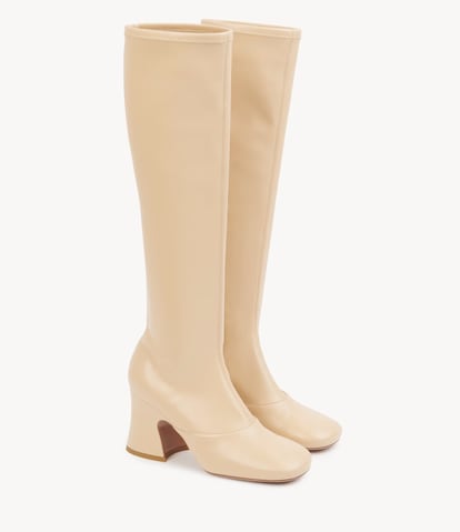 Su puntera ligeramente cuadrada conecta con otro diseño clave de la temporada: la bota Janis de Chloé. Reconocible por su tacón acampanado de ecos victorianos (muy popular también en los años setenta), el pespunte en la delantera y un tejido elástico con efecto cuero, entronca con ese ideario hippie chic que su directora creativa Chemena Kamali lleva haciendo desde hace temporadas (y todo apunta a que se alargará en el tiempo).