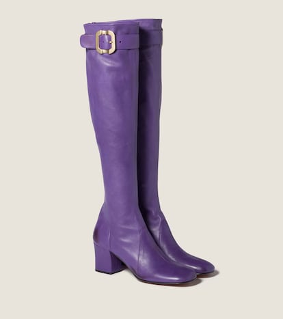 Tras infinidad de interpretaciones en décadas posteriores –la de Frida Giannini para Gucci en OI 2014 fue quizás la más memorable–, Miuccia Prada es la gran culpable de su revival este 2025. En su desfile otoñal de Miu Miu presentado en París, hubo una pisada que acaparó todas las miradas: una idéntica go-go boot con hebilla a la que Battani Boutique y la británica Zandra Rhodes popularizaron en los años setenta. Adherida a una cobertura de napa en colores vibrantes como el púrpura, rojo o caramelo, los 1.850 euros que rondan su etiqueta no son obstáculo para que se encuentre sold out en casi todas las tallas.