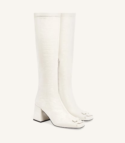 La fidelidad a los modelos de la época es la base de una tendencia que cede la experimentación al color y el influjo de materiales más duraderos y ligeros. Es el caso de Jil Sander, que retoma la media caña original con un tacón ligeramente desviado. Courrèges, sin embargo, añade a su línea Reedition, que bucea en los grandes hits de su archivo, un diseño en vinilo un poco más alto y refinado, con el logo AC en la puntera que hará las delicias de cualquier fanático de la época.