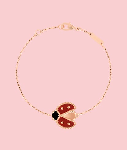 La pulsera Lucky Spring, con una mariquita de alas abiertas, está creada con oro rosa, ónice y cornalina. La firma de joyería acaba de abrir su primera tienda en Madrid y se puede ver en vivo y en directo antes de adquirirla. (3.500 euros)