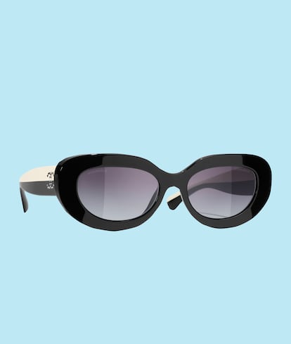 Clásicas, pero especiales. Llevan las patillas bicolores en blanco y negro con el logo de la firma francesa. Son de acetato con los cristales en degradados de morado a gris. (520 euros).