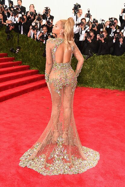 Desde que Beyoncé demostró al mundo en 2003 que un escote de vértigo puede ser una manifestación artística con repercusiones globales (¿alguien ha olvidado el Versace naranja y morado que vestía en Crazy in love?) esa ha sido una de sus grandes marcas estilística. Aquí, en 2015, en una gala de boxeo en el hotel MGM de Las Vegas, Queen Bey todavía estaba apegada a su viejo estilo, muy dosmilero.Al Bello (Getty Images)Una de las primeras grandes manifestaciones de estricto fashionismo que se le recuerdan a la diva se produjo en la exposición del Met de 2015, consagrada a China, en la que también brilló Rihanna con un inolvidable vestido de la creadora Guo Pei. El de Beyoncé era de Givenchy, cuando aún Riccardo Tisci era su director creativo.Larry Busacca (Getty Images)A pesar de que se trataba de un manifiesto de moda, en ningún caso la cantante renunció a la aproximación como diva: la elegancia no es casi nunca su consigna y no tiene por qué serlo.Jamie McCarthy (FilmMagic)Antes de casarse con Jay Z y convertirse en Mrs. Carter era habitual ver a Beyoncé en sus apariciones casuales con looks juveniles que dejaban ver sus espectaculares piernas. Después, poco a poco, fue adoptando una pose de gran señora que ya nunca ha abandonado.Raymond Hall (GC Images)Las prodigiosas piernas con las que ejecuta algunas de las coreografías más espectaculares del pop contemporáneo son un activo que muestra sin ningún tipo de pudor. La misma filosofía que en el escote la lleva a la falda.NCP/Star Max (GC Images)Los corpiños y bodies con medias y botas altas han sido uniforme imprescindible en sus giras. La texana siempre lleva, como mínimo, dos pares de medias, uno encima del otro. Los primeros son unos panties reductores que se adaptan perfectamente al tono de su piel. Sobre ellos suele colocar un par de medias de red, normalmente en tono nude, aunque a veces también se ha atrevido con las negras.Kevin Mazur (Getty Images for Anheuser-Busch)En 2016 fue la primera vez en la que la cantante se metió de lleno en los mensajes políticos, cuando empezó a reivindicar partes del imaginario de la cultura negra del siglo XIX. Sus famosas pamelas en el Reformation Tour todavía permanecen en la retina. Aquí, en una actuación de 2016.Larry Busacca/PWLa llegada al mundo de su primera hija, Blue Ivy Carter, supuso una auténtica conmoción y un giro en su forma de afrontar su carrera artística. La maternidad en sí misma empezó a formar parte de sus letras y de los argumentos de muchos de sus shows. En cuanto la niña pudo caminar sola empezó a aparecer en actos públicos con su madre. Siempre con looks combinados. Aquí las vemos en la entrega de los MTV Awards de 2016.Kevin Mazur (WireImage)En 2017, embaraza de gemelos, acudió a recoger los flamantes nueve grammys que le dieron a raíz del lanzamiento de Lemonade, su disco más crítico con la sociedad estadounidense.Kevin Mazur (Getty Images for NARAS)Apareció de nuevo el escote Versace, pero sobre todo lució sobre su pecho un collar de diamantes de Lorraine Schwartz valorado en 12 millones de euros. El tamaño de las piedras es casi tan icónico como el vestido de Crazy in love.Steve Granitz (WireImage)Aunque después de casarse era habitual que Jay Z hiciese alguna aparición en los shows de Beyoncé, tras su segundo parto él se convirtió en un músico residente más en las giras, con una imagen adecuada a los looks de ella.Kevin Mazur (Getty Images For Parkwood Entert)En la gira On The Run II, de 2018, se hizo un esfuerzo muy consciente para que el estilo de ambos intérpretes se sincronizara.Larry Busacca/PW18 (Getty Images for Parkwood Entert)El encargado del novedoso vestuario, LaQuan Smith, sacaba partido a los tics clásicos del vestuario de la diva.Larry Busacca/PW18 (Getty Images for Parkwood Entert)A lo largo de 2019, el año previo a la pandemia, Beyoncé se enrocó en un look de primera dama que no le impidió hacer despliegues fashionistas inolvidables, como la ocasión en la que se presentó en el Dolby Theatre para el estreno de El Rey León con una espectacular chaqueta de maxihombreras cubierta de cristales de Alexander MacQueen.Jean Baptiste Lacroix (WireImage)Enseñando las piernas, por supuesto.Jon Kopaloff (FilmMagic)En los primeros Grammy presenciales celebrados tras la irrupción de la covid, los de 2021, Beyoncé demostró que la crisis mundial solo había avivado sus pulsiones estilísticas. Los increíbles pendientes gigantes de Schiaparelli con los que hizo acto de presencia fueron muy comentados.Kevin Winter (Getty Images for The Recording A)Al igual que el orgullo con el que luce siempre su silueta, sea cual sea esta.Kevin Winter (Getty Images for The Recording A)Su última y más sonada actuación ha sido hace solo unos meses, en la ceremonia de entrega de los Oscar de 2022, en la que lució piernas, por supuesto, y un vestido de tul neón diseñado por David Koma para la ocasión.Handout (A.M.P.A.S. via Getty Images)