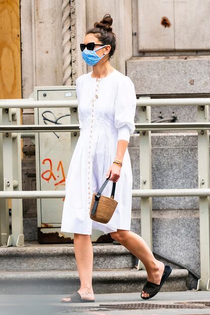 Cuando hace unos días Katie Holmes salió a pasear por Nueva York junto a su hija Suri Cruise, no hubo publicación especializada que no se hiciera eco de su look. Sin llegar a las altísimas cotas de viralidad que copó hace un año su sujetador de cashmere con cárdigan a juego, la actriz acertó al combinar un sencillo vestido blanco –una de las prendas imprescindibles del verano– con sandalias planas, moño descuidado y un pequeño bolso firmado por una gran marca: Cesta Collective. Fundada en 2018 (ya hablamos de ella aquí) por Courtney Weinblatt y Erin Ryder, ambas con experiencia previa en la industria de la moda, la etiqueta tiene detrás una historia que trasciende la popularidad que rostros conocidos como Dianna Agron, Claire Foy o la propia Katie Holmes, fanáticas de sus diseños, le han otorgado.
