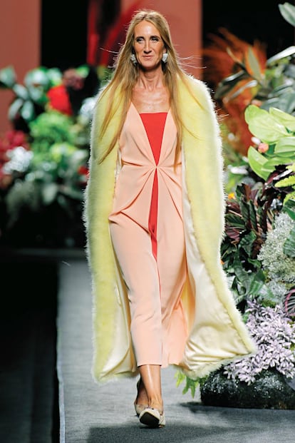 El diseñador presenta su colección "Un viaje lento", inspirado en la filosofía "slow travel" y en los viajes por carretera. Para la ocasión, Duyos ha cambiado a las modelos por mujeres cotidianas, entre las que se encontraba la chef Begoña Rodrigo, del restaurante valenciano La Salita.