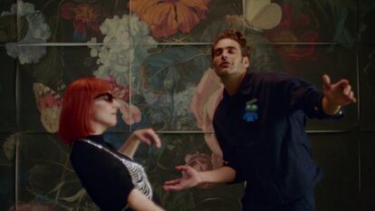«Espera un momentito, que me están llamando a la puerta…», se disculpa la intérprete. Y aparece Jon Kortajarena, un repartidor con el corazón roto al que rápidamente le receta el baile. El timbre vuelve a sonar. «No te vayas»… Esta vez es Pamela Anderson, la icónica vecina de al lado, que solo pasa a desearle felices fiestas, con el bolso que le recomendó hace unos días.