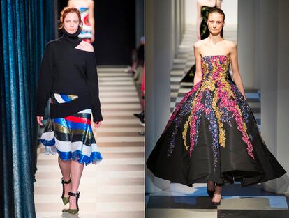 Dos desfiles en uno. Monse primero; y Oscar de la Renta después. En el mismo espacio, en la misma pasarela y con los mimos invitados, en los mismos asientos. Una idea a priori tan desconcertante como si la próxima temporada viéramos en el calendario oficial de París una presentación conjunta de Balenciaga y Vetements; o de Loewe y J.W. Anderson; o de Chanel y Karl Lagerfeld. Es cierto que cuando un equipo creativo trabaja al frente de dos enseñas, muchas veces, agrupan los estudios de diseño en un mismo edificio (como ha hecho Raf Simons con su línea homónima, hoy instalada en los headquarters de Calvin Klein). También dividen la jornada laboral en dos, para centrarse en el diseño de una colección por la mañana; y en el de la otra por la tarde (así se organizan, por ejemplo, Alessandro Dell’Acqua y su equipo, para repartir su tiempo entre Rochas y Numero 21). Pero nunca antes dos líneas habían desdibujado tanto los límites para compartir pasarela… e incluso carrusel final, en un cruce de modelos (y de identidades).