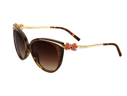 Además de sortijas, anillos y pulseras existe otra foma de lucir una joya. Se trata de unas gafas de sol de estética retro con montura de oro de 18 quilates y zafiros. Las firma Bvulgari y cuestan 8.500 euros.