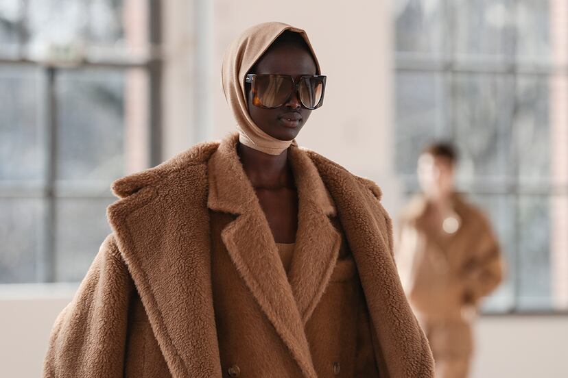 Ese aire inglés que impregna las propuestas de la enseña italiana bebe directamente de la reina Isabel II (ahí están esos pañuelos en la cabeza a lo Balmoral) así como de la top model Stella Tennant, que falleció a los 50 años a finales del año pasado. El director creativo de la firma, Ian Griffiths, presentó una colección de aniversario que rindió homenaje al beige, color enseña de la casa, así como a sus prendas más icónicas, pero sin caer en la nostalgia. Las bomber extragrandes aportan un punto juvenil y alegre al legado de la casa y las chaquetas de caza o las capas de aires ecuestres recuerdan a la Inglaterra rural de Stella Tennant que, por cierto, desfiló en varias ocasiones para Max Mara a lo largo de su carrera.