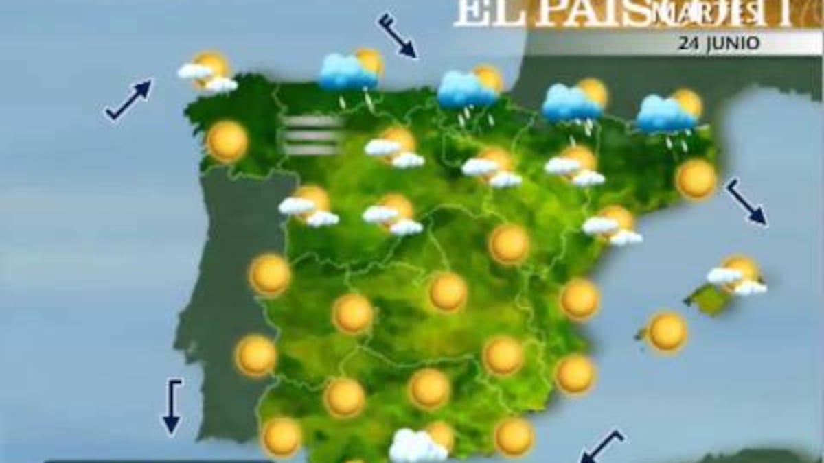 Hoy martes han predominado los cielos nubosos en el extremo norte peninsular, con chubascos leves y esporádicos en el área del cantábrico y norte de Castilla y León. En Pirineos, tormentas, mientras que en el centro y sur de la península han predominado cielos poco nubosos y despejados. Las temperaturas, en ascenso en todo el país. Para mañana miércoles sólo se esperan algunas nubes en el área del Cantábrico y, de momento, no se prevén precipitaciones. En el resto se esperan cielos azules y temperaturas veraniegas. Las máximas más altas, de nuevo, en el sur, donde se rozarán los 38 grados, y las más bajas en el noroeste, donde oscilarán alrededor de los 22 grados. Las mínimas serán muy suaves en todo el país, no bajaremos de los 12 grados en ningún punto.