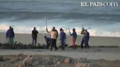 Un grupo defensor de animales muestra un video con la matanza de focas en una playa de Namibia