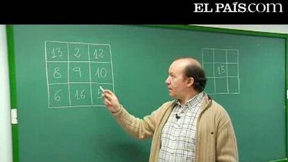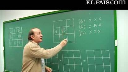 Una solución al tercer desafío matemático de EL PAÍS (ver en el vídeo de la izquierda el planteamiento del problema y en el de la derecha la solución) es el cuadrado cuya primera fila está formada por los números 45, 25, 3; la segunda fila por los números 1, 15 y 225; y la tercera fila por los números 75, 9, 5. Los otros cuadrados que también son solución del problema (hay otros siete) son los que se obtienen como resultado de los giros y simetrías del cuadrado anterior. El ganador de una biblioteca matemática como la que cada semana se ofrece con EL PAÍS es Aritz Ojembarrena Saracho, de Las Rozas (Madrid). Enhorabuena.