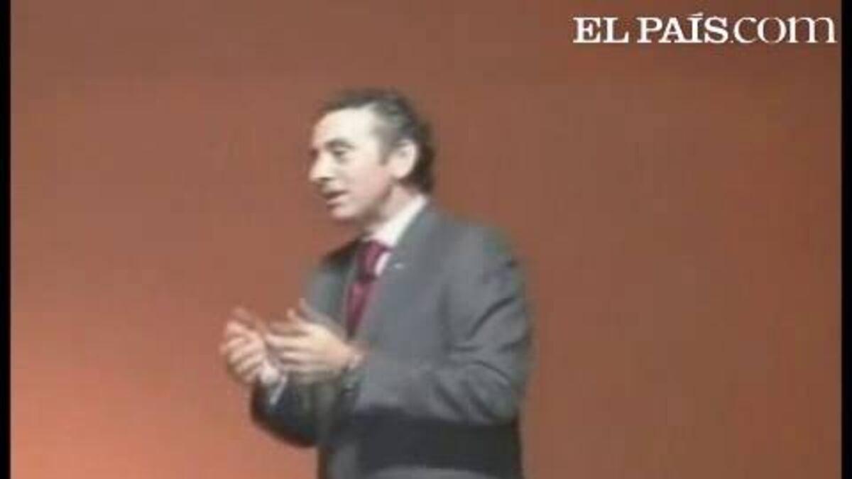 Germán Cardona, supuesto responsable de una estafa multimillonaria, explicando los principios de su empresa en una conferencia en Bogotá (Colombia) en marzo de 2008.