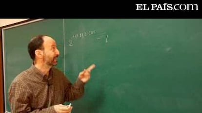 Ya hay solución para el noveno desafío matemático con el que EL PAÍS celebra el centenario de la Real Sociedad Matemática Española. Alberto Elduque, catedrático de Álgebra de la Universidad Zaragoza propuso el problema (ver vídeo de la izquierda) y lo resuelve ahora: la enorme potencia de dos que buscábamos acaba en 52. El ganador de una biblioteca matemática como la que entrega cada semana EL PAÍS ha sido en esta ocasión Pablo Pajuelo Cabezas. Este domingo, en el quiosco, por 9,95 euros con el periódico, Una nueva manera de ver el mundo, de María Isabel Binimelis.