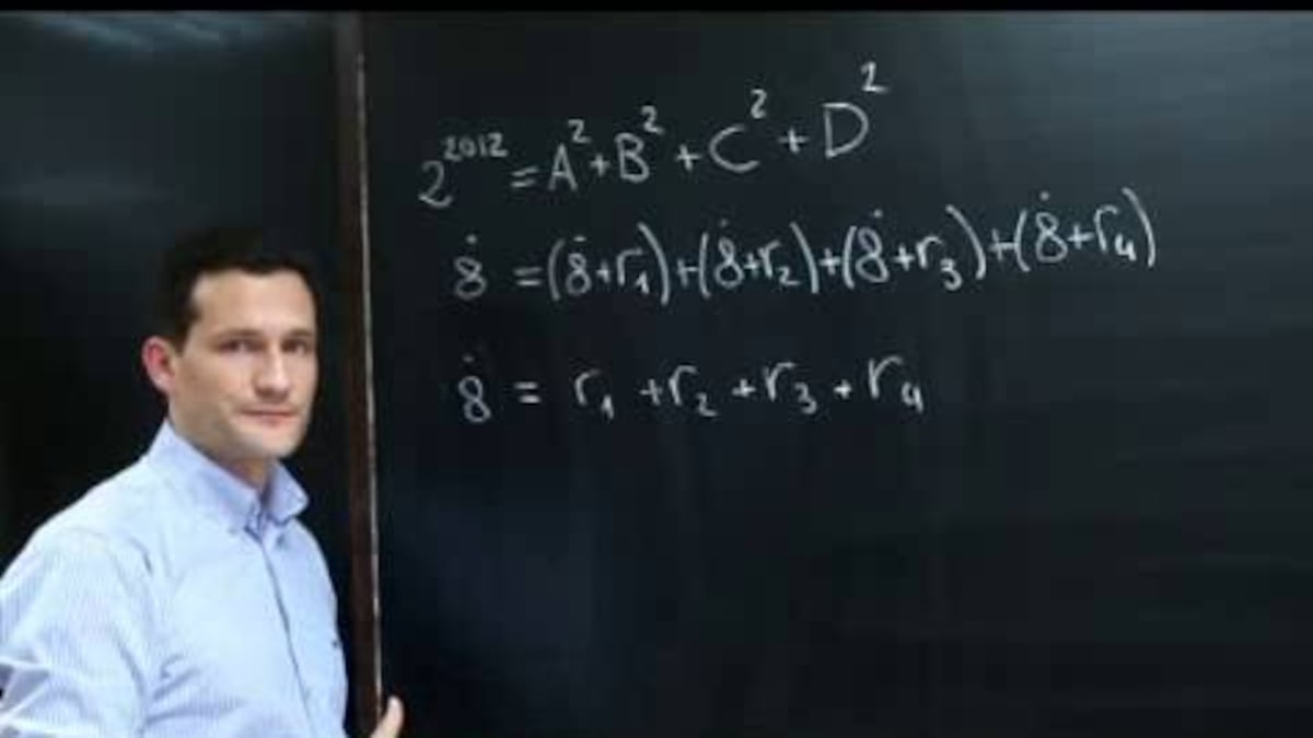 Ya hay solución para el decimonoveno desafío matemático con el que EL PAÍS celebra el centenario de la Real Sociedad Matemática Española y que planteó Juan González-Meneses, Profesor Titular de la Universidad de Sevilla. Hay una manera de descomponer 2^2012 como suma de cuatro cuadrados, y ninguna manera de descomponer 2^2011. El ganador de una biblioteca matemática como la que entrega cada semana EL PAÍS ha sido en esta ocasión Iago Vaamonde Paniagua, estudiante de Ingeniería Industrial, de Vigo. Este domingo, en el quiosco, por 9,95 euros con el periódico, Hipotecas y ecuaciones. Las matemáticas de la economía, de Lluís Artal y Josep Sales.