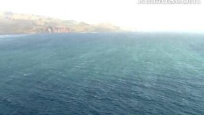Imágenes aéreas de manchas de azufre tomadas ayer en las proximidades de la costa de la isla canaria