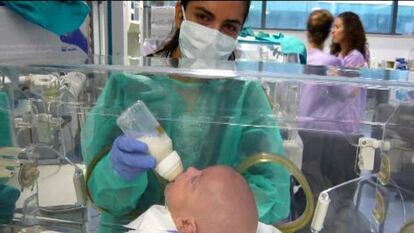 De todo ello se encargó un equipo del hospital La Fe de Valencia el pasado mes de diciembre. Ahora, Marc, que tiene cinco meses, evoluciona favorablemente y no presenta secuelas del tumor ni de la cirugía, más allá de una cicatriz transversal en el cuello. “Esta experiencia nos ha cambiado la vida”, explicó este lunes su padre, Deliz Nieto, en la rueda de prensa que ofreció junto a su mujer y los cirujanos que dirigieron la intervención. “Lo difícil”, recordaron los padres, fue la decisión de pasar por el quirófano, debido a los riesgos que presentaba la intervención, tanto para el pequeño como para la madre.