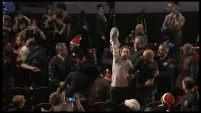 Un grupo de trabajadores de Telemadrid aprovecha el momento en el que se canta el Gordo para hacer sus reivindicaciones Dos sanitarias son desalojadas del Teatro Real por gritar a favor de la sanidad pública