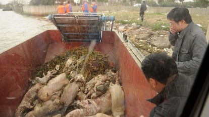 Es una imagen de película de horror o ciencia ficción. Un total de 5.916 cerdos muertos han sido recogidos de las aguas del Huangpu, el principal río que atraviesa Shanghai, según un comunicado hecho público este martes a última hora por las autoridades municipales. Los cuerpos de los animales comenzaron a aparecer flotando hace unos días en esta importante vía fluvial y de suministro de agua, sin que hasta el momento haya trascendido cómo fallecieron y acabaron en el río.