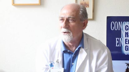 Luis Ruiz del Árbol pasea por los pasillos del hospital Ramón y Cajal de Madrid por última vez. Algún compañero se para y le da la mano. No le dice mucho más. Sabe que él está entre los cerca de 500 médicos de más de 65 años que el pasado 30 de abril, vísperas de un largo puente en la capital, recibieron una fría carta de despido de la Comunidad de Madrid. De algunas paredes cuelga la carta al director de EL PAÍS en la que 29 miembros del servicio de digestivo agradecen a Ruiz del Árbol y a otros cuatro despedidos su dedicación durante más de 36 años. “La sanidad pública no me ha dado ni las gracias y esgrime razones falsas para no dejarme seguir”, explica este reputado hepatólogo experto en cirrosis al que la Comunidad le había dado hace meses una prórroga para ejercer su profesión cinco años más, hasta los 70.
