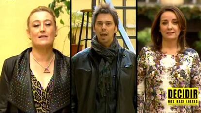 Aborto legal, libre, seguro y gratuito. Viejas consignas de los años 1970 y principios de 1980 que vuelven a estar de actualidad. Lemas por los derechos sexuales y reproductivos que actores, cantantes o periodistas han lanzado hoy contra la reforma de la ley del aborto que prepara el Gobierno de Mariano Rajoy. Actrices como Aitana Sánchez-Gijón, Natalia Dicenta, Ingrid Rubio o María Barranco; cantantes como Miguel Ríos, Martirio o Ana Belén; políticas como Uxue Barcos, Gaspar Llamazares (IU) o Elena Valenciano (PSOE) o escritoras y periodistas como Pepa Bueno, Julia Otero, Almudena Grandes o Luis García Montero han prestado su imagen y su voz a un vídeo con el que la que la plataforma Decidir nos hace libres exige al Ejecutivo del Partido Popular que mantenga la actual ley de salud sexual y reproductiva.