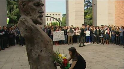 Los investigadores, con sus reivindicaciones sobre la situación crítica de la I+D por los recortes y la fuga de cerebros, recuerdan a Santiago Ramón y Cajal en el 79 aniversario de su muerte