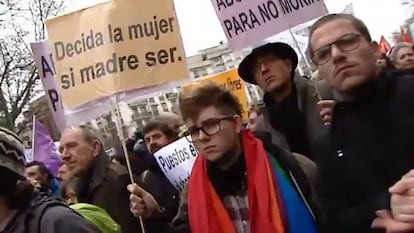 Claudia, Ana María y Lucía, todas de 15 años, son amigas y compañeras de instituto; la de hoy sábado ha sido una de sus primeras manifestaciones. "Salvo por alguna de educación”, comentan. Explican que se movilizan para defender “el aborto libre”, y coinciden en que, “dependiendo del caso”, todas, menores incluidas, deberían poder decidir si necesitan recurrir esta intervención médica. No todo el mundo puede contárselo a sus padres como harían ellas en caso de que necesitaran abortar, explicaban. Con la ley actual las menores de 16 y 17 años no necesitan el consentimiento paterno para abortar, aunque deben contarlo en casa; siempre que esto no les suponga un "conflicto grave" o que alegan que vayan a recibir presiones. El anteproyecto de ley elimina esta opción. Con la ley Gallardón todas las menores necesitarán el permiso paterno para interrumpir su embarazo.