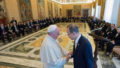 Una movilización ética mundial, más allá de cualquier diferencia de credo o de opiniones políticas, que desafíe todas las formas de injusticia, que incida sobre las causas estructurales de la pobreza y el hambre, que garantice un trabajo decente y útil para todos, que se oponga a la economía de la exclusión y a la cultura del descarte. Esto es, y con estas beligerantes palabras, lo que el papa Francisco le ha propuesto al secretario general de Naciones Unidas, Ban Ki-Moon, a quien además le ha recordado que una parte importante de la humanidad continúa excluida de los beneficios del progreso y relegada, de hecho, a seres de segunda categoría.