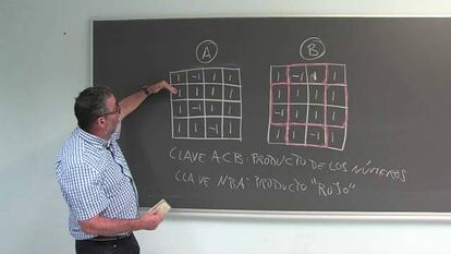 Adolfo Quirós, vicepresidente de la Real Sociedad Matemática Española, profesor de la Universidad Autónoma de Madrid y coordinador de esta sección; resuelve el primer desafío matemático que este verano planteamos a nuestros lectores (puede ver aquí el vídeo). El ganador de la colección de libros Grandes Ideas de la Ciencia ha sido Guillermo Vicente, un ingeniero aeronáutico de Sabadell que lleva ya unos años afincado en Torrelodones (Madrid).