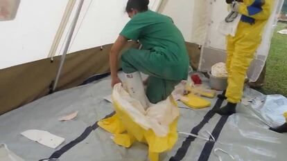 R. Seguimos unos principios similares a los aplicables en Europa. En cuanto se detecta a un paciente, se le aísla de cualquier contacto con sus allegados y el personal sanitario. Este último debe llevar un traje de protección que le cubra cada milímetro de la piel. Además, se desinfecta cualquier objeto que haya estado en contacto con uno de los pacientes. Los objetos personales, la ropa... ya sea en su casa, en la ambulancia o en los medios utilizados para transportar un cadáver.