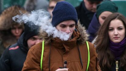 Menos analógicos, más digitales. Los adolescentes españoles fuman menos y se inician más tarde al consumo de tabaco, pero crece el número de aquellos que prueban el cigarrillo electrónico. El 20,1% de los estudiantes entre 14 y 18 años ha vapeado al menos una vez en la vida, según la última Encuesta sobre Uso de Drogas en Enseñanzas Secundarias en España, un incremento de tres puntos en comparación con 2014. Lejos de ser una cifra alarmante o de aproximarse a una "epidemia" como la recién declarada en Estados Unidos, los médicos advierten de sus riesgos, entre ellos la posibilidad de cruzar la delgada línea que separa estos dispositivos del tabaco tradicional.