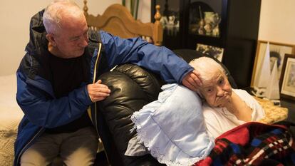 Nueve años de austeridad después y tras escuchar repetidamente a los gobernantes proclamar el comienzo de la recuperación económica, la situación de Genoveva y su hijo ha empeorado. El avance del alzhéimer ha agarrotado completamente el cuerpo de la enferma, y Xosé Manuel, de 70 años, casi no puede mover a su madre. Es incapaz de vestirla y así no puede enviarla al centro de día. Ha solicitado asistencia a domicilio pero asegura que en el Ayuntamiento de Carnota le han contestado que “no tienen personal”. “¿Cómo puede ser eso con la de gente que hay en el paro y quiere trabajar?”, se pregunta.